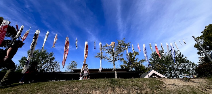 南小校区共生ステーション前の鯉のぼり:杁ヶ池公園
