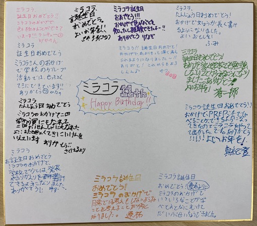 ミラコラ創立11周記念 ミラコラに通う子供たちによる寄せ書きですこどもキャリアパーク ミラコラの活動拠点