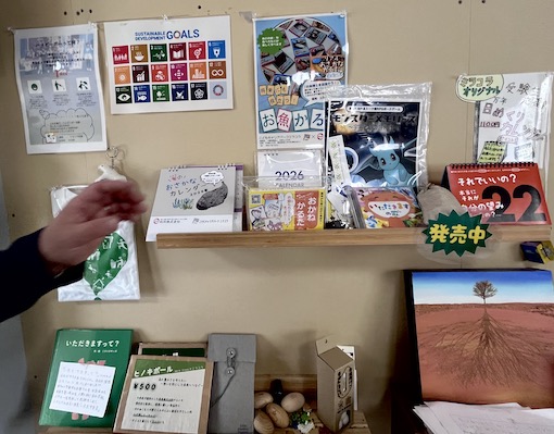 活動スペースの壁面には、子供たちが自ら企画し制作した「お魚カルタ」などが展示されていました