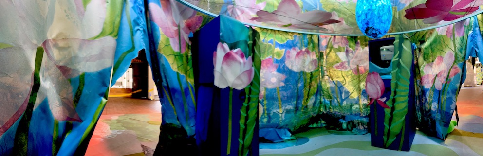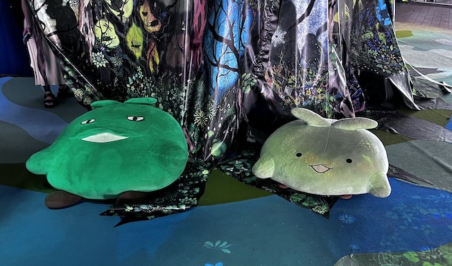 「かがやく命~ イグアナとワルツを!」と題された作品展示は、陶芸家ぽんのり子(鈴木のり子)さん(81歳)によるもの