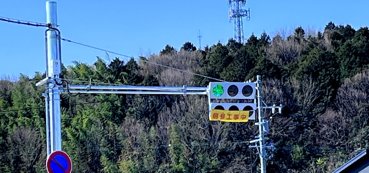 未だ進行方向の矢印だけは「信号工事中」になっています