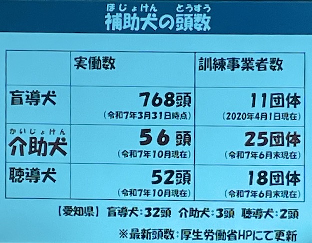 令和7年現在、介助犬としての国内での実働数は未だ56頭、愛知県では3頭だけです