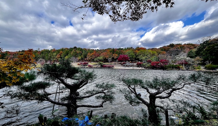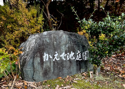 「かえで池 池畔の径」(Path around Maple Pond)のかえでの紅葉を眺めながら「かえで池庭園」へ