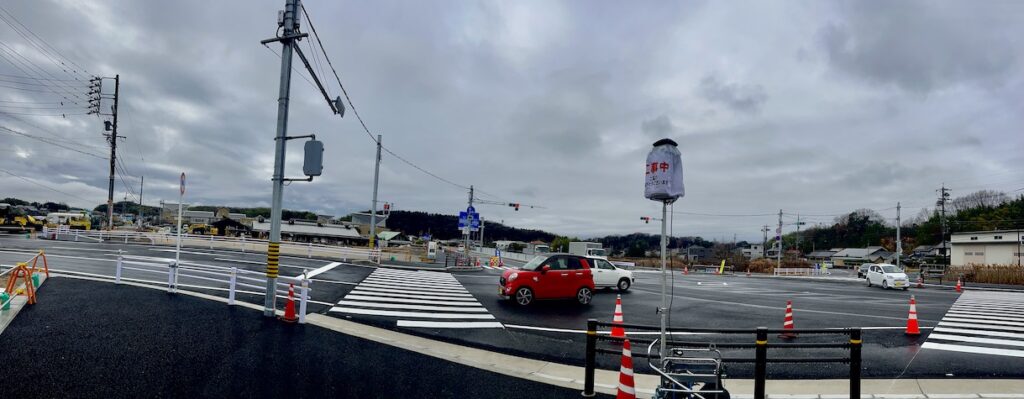 信号機のある交通量の多い交差点がわずか20m移動するなかなかないであろう交差点の移設でした