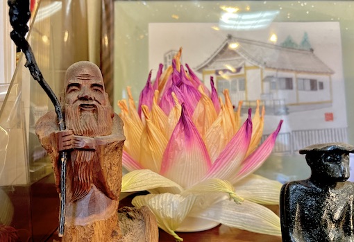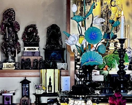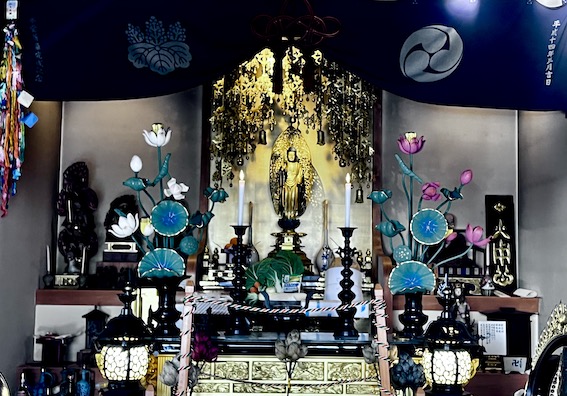 豊善院には、戦国時代に「長久手城」城主の加藤忠景が守り神として祀っていたという小ぶりな「観音様」が本堂で一緒に祀られています(中央左下、金色の厨子の中に祀られているのが長久手観音)長久手郷土史研究会サイト