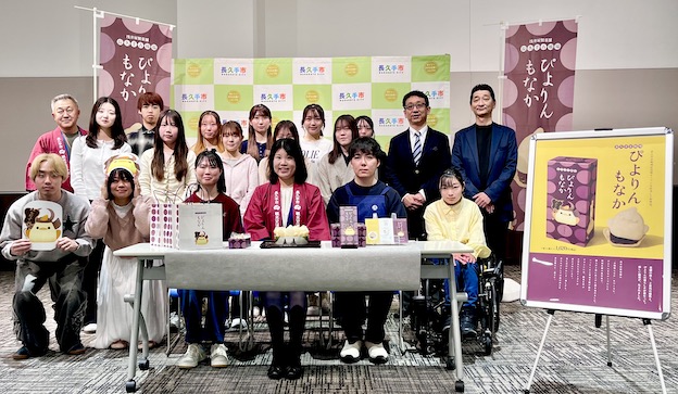 「ぴよりん もなか」は、長久手を代表するお土産を作ろうと、名古屋名物「ぴよりん」をモチーフに、「古戦場もなか」で知られる長久手の老舗和菓子店の浅井家製菓鋪と、愛知淑徳大学交流文化学部観光専攻 林ゼミ、そして長久手市観光交流協会による共同開発商品です