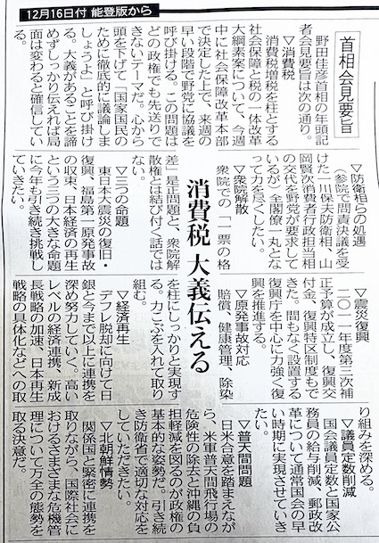 野田佳彦首相が年頭会見をし、消費税を10%に増税宣言(消費増税法成立)!